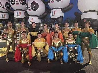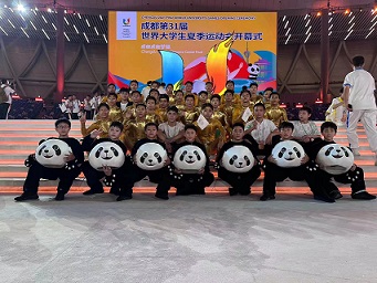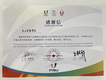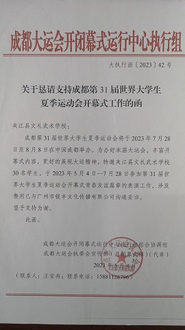 我校于2023年5月收到来自大运会工作组的邀请函,受邀参加开幕式表演。为备战大运会开幕式,圆满完成任务,我校领导带领众学员赴往成都,从6月10日开始进行了为期一个多月的封闭式训练。