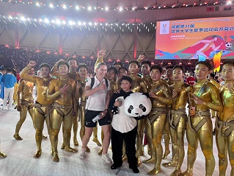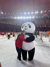 开幕式当晚,我校学员完成空中飞人和扮演熊猫节目,并开心地和来自世界各地的运动员、裁判们合影。